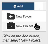To add a new project, click + Add, then select New Project.