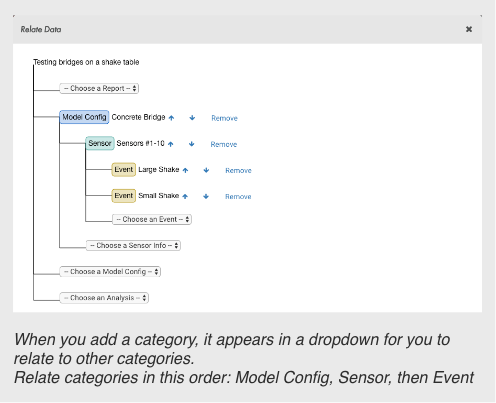Relating Data allows you to relate categories to each other and to an experiment, which determines the layout and order of categories in your publication. You can reorder the categories if needed.
