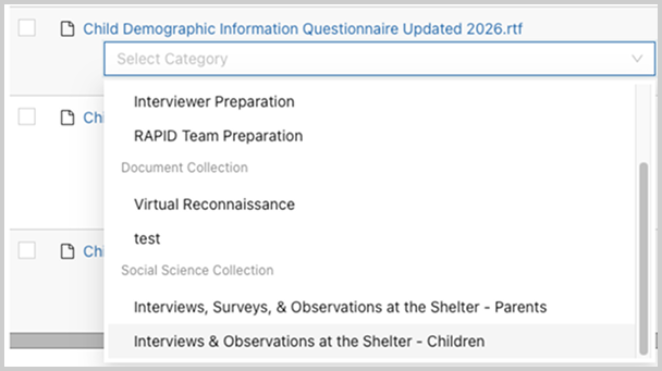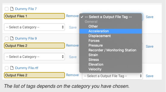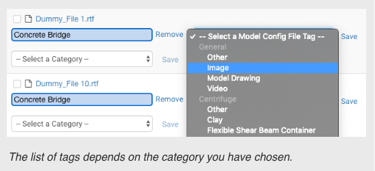 After putting files in categories, dropdowns will appear to allow you to tag specific files.