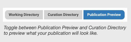 All of the curation work is done in the Curation Directory. The Publication Preview lets you examine the layout of your publication so you can visualize/verify how your work will appear once published.