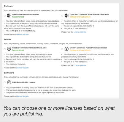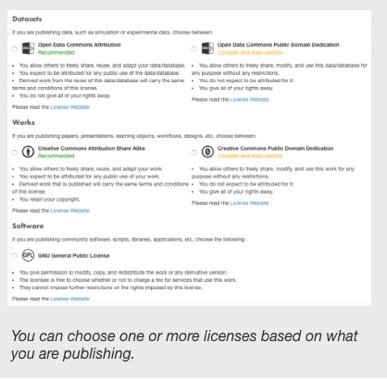 In Licenses, select one or more licenses that best fit your data.