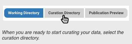 All of the curation work is done in the Curation Directory, while the Publication Preview lets you examine the layout of your publication to give you a peace of mind about how your work will appear to other researchers once published.