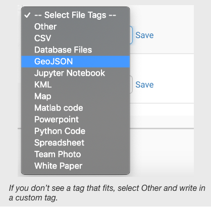 If you do not see a file tag that fits, you can select Other and write in your own descriptive tag.