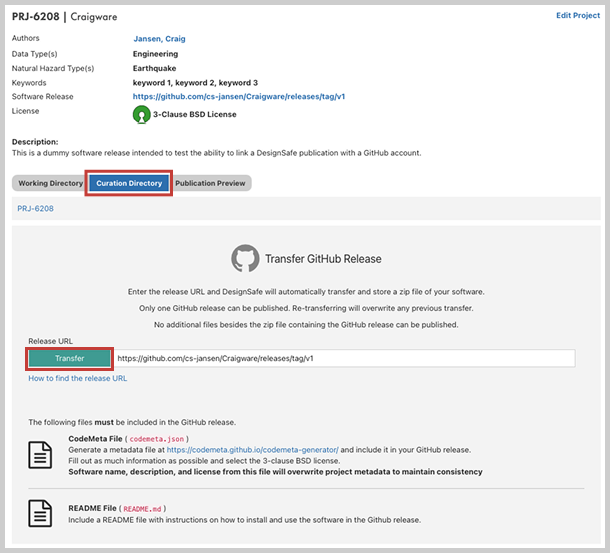 Select Transfer and the release will be transfered to DesignSafe.