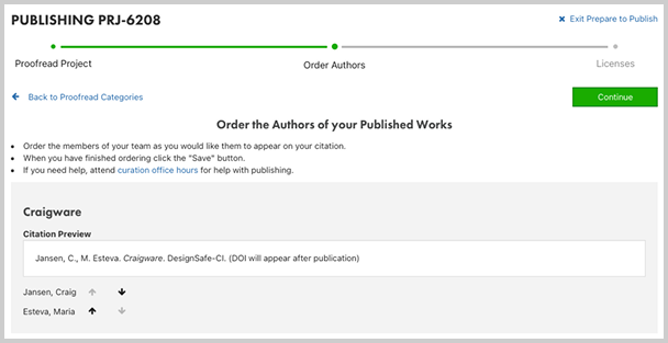 When you are satisfied with your work and wish to publish it and recieve a DOI, click Prepare to Publish in the Publication Preview.