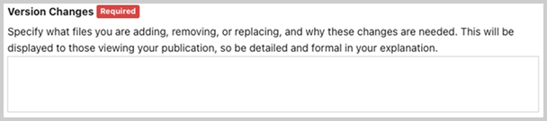 You will be asked to explain the changes made to this new version. This will be displayed to those viewing your publication, so be detailed and formal in your explanation.