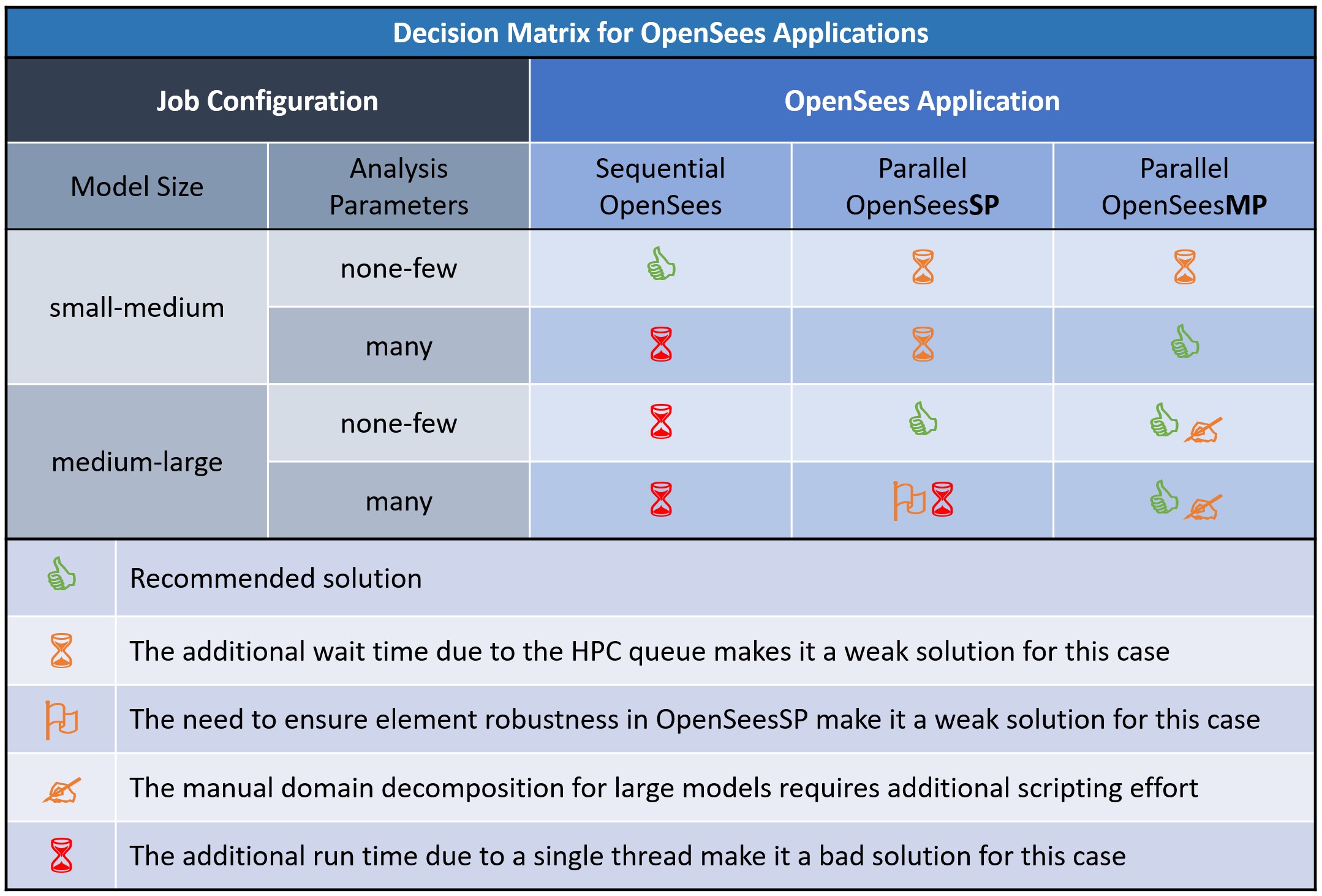 Decision Matrix for OpenSees Applications