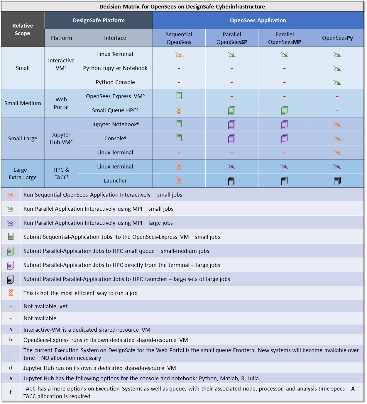 Decision Matrix for DesignSafe Platform for OpenSees