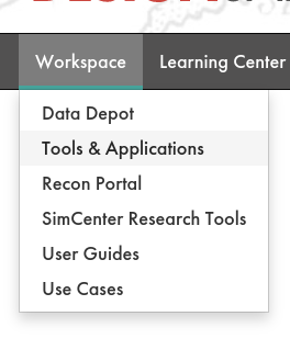 To access Hazmapper from Designsafe, the user can first navigate to the top menu bar and find Workspace (Fig 1.1).