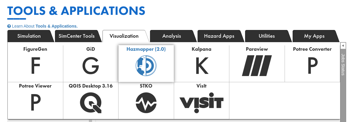 From the Tools & Applications page, the user can navigate to Hazmapper (2.0) (Fig 1.3) and then Launch Hazmapper (Fig 1.4).
