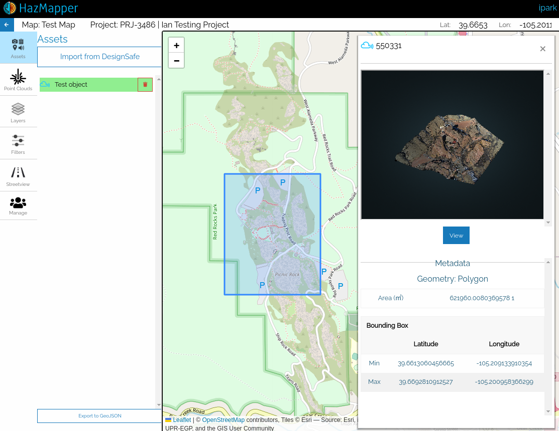 When a Hazmapper map is associated with a DesignSafe project and made public, it provides an interactive way for others to view curated project data directly on the web. This allows visitors to: