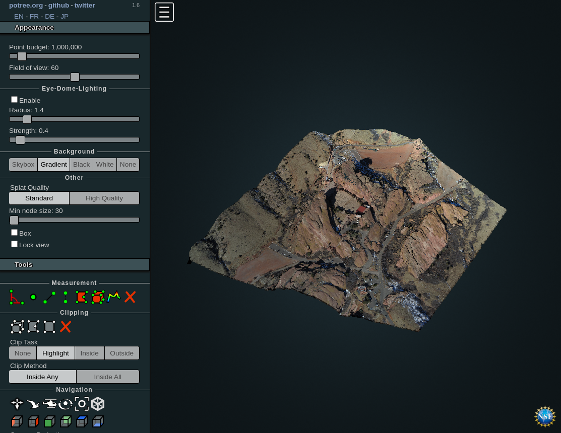 The Potree Viewer can be used for further analysis of the point cloud.