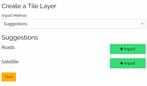 Otherwise, the user can choose among the supported tile layer formats as the Import Method.