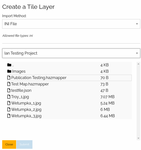Here the user must select a .ini file containing the required tile layer data.