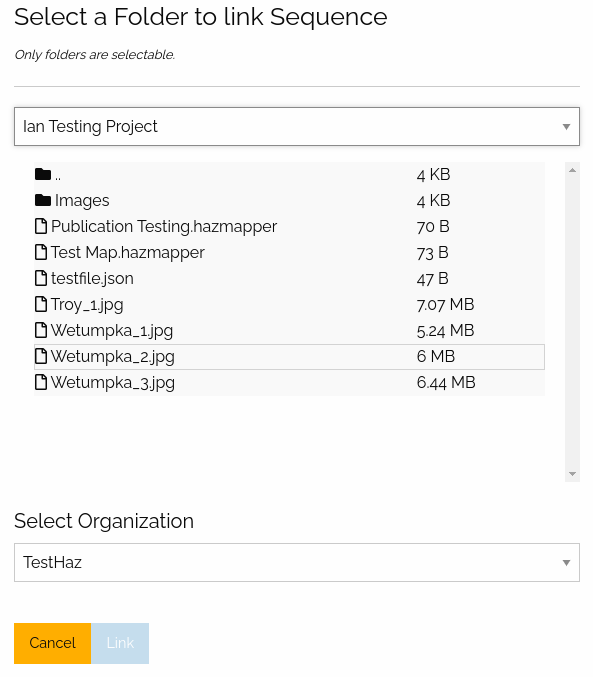 To link the assets to Hazmapper, the user must right-click on the asset to open the info panel (Fig 2.42). From there, the user can click on the Link sequences to Hazmapper button.