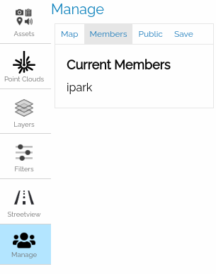 The Members tab allows the user to view other users with access to the map (these will be managed by the linked DesignSafe Project).