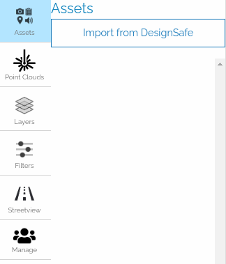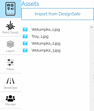 Once imported, the selected assets will be listed inside the panel. A user can click on each asset to jump to the asset location on the map or to get the metadata associated with the asset.