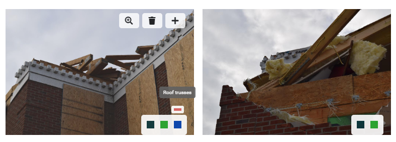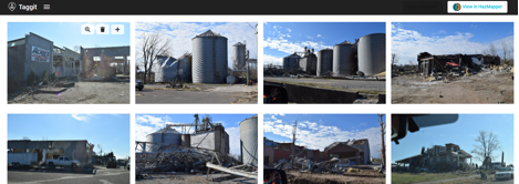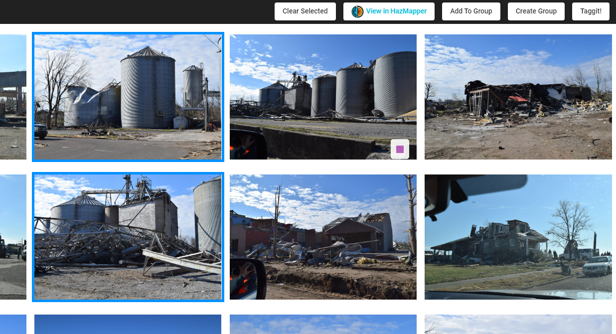 As an example workflow, we will consider a damage survey dataset from the December 2021 Midwest tornado outbreak (see below) and create some groups to organize these images.