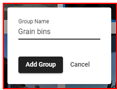 Clicking on Create Group will bring up a window in which to type in a name for your new group as show here. I am creating a group for all the Grain bins.