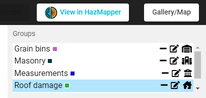 Modified icons are shown below for each of the groups. These icons are then used when that group's images are plotted in HazMapper.