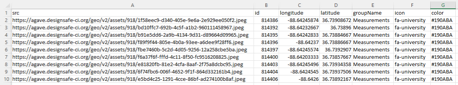The csv files that Taggit generates look like what is shown below. In this case, the csv file contains all the photos that were included in the group called “Measurements.”
