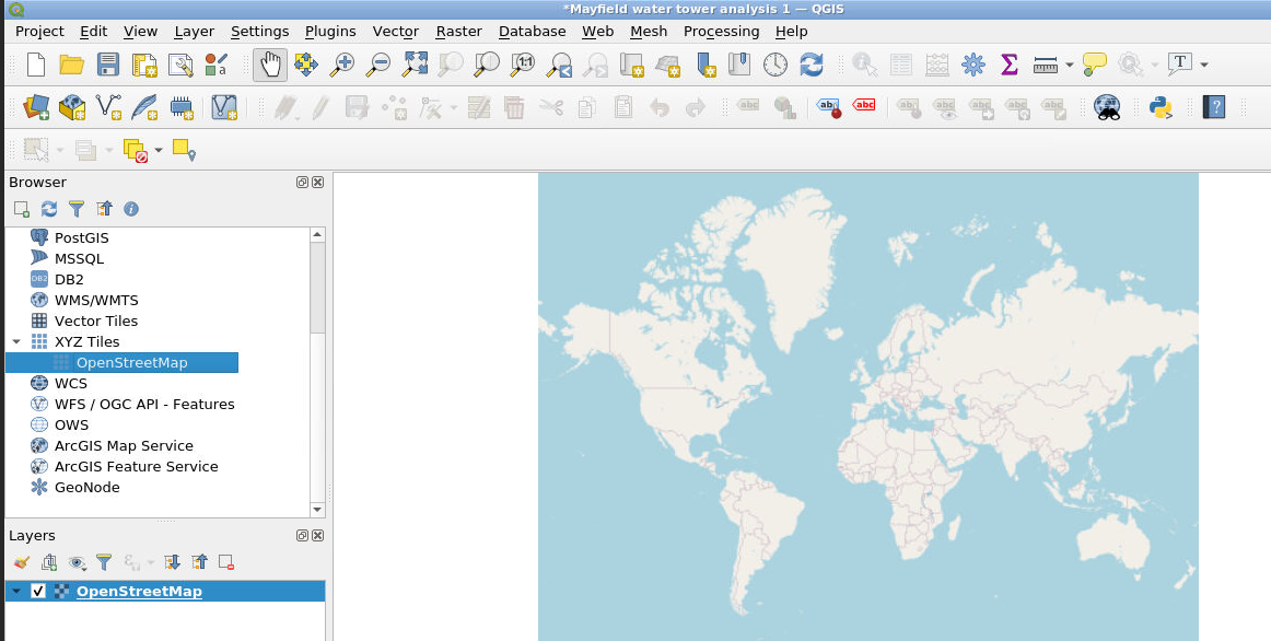 We can add a base map by double-clicking on OpenStreetMap as shown here:
