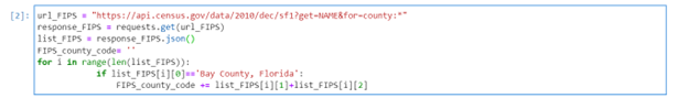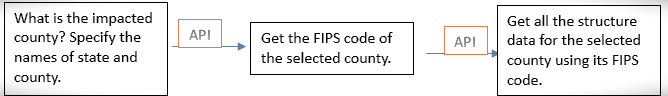 Each state and county in the United Sates have a unique FIPS code. Building data from the NSI database can be accessed for each county using its proper FIPS code. The following code gets the FIPS code of the county of interest.