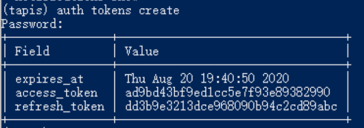- Create a token using the command tapis auth tokens create. At the end, the response will appear on the cmd line as shown in Figure 2